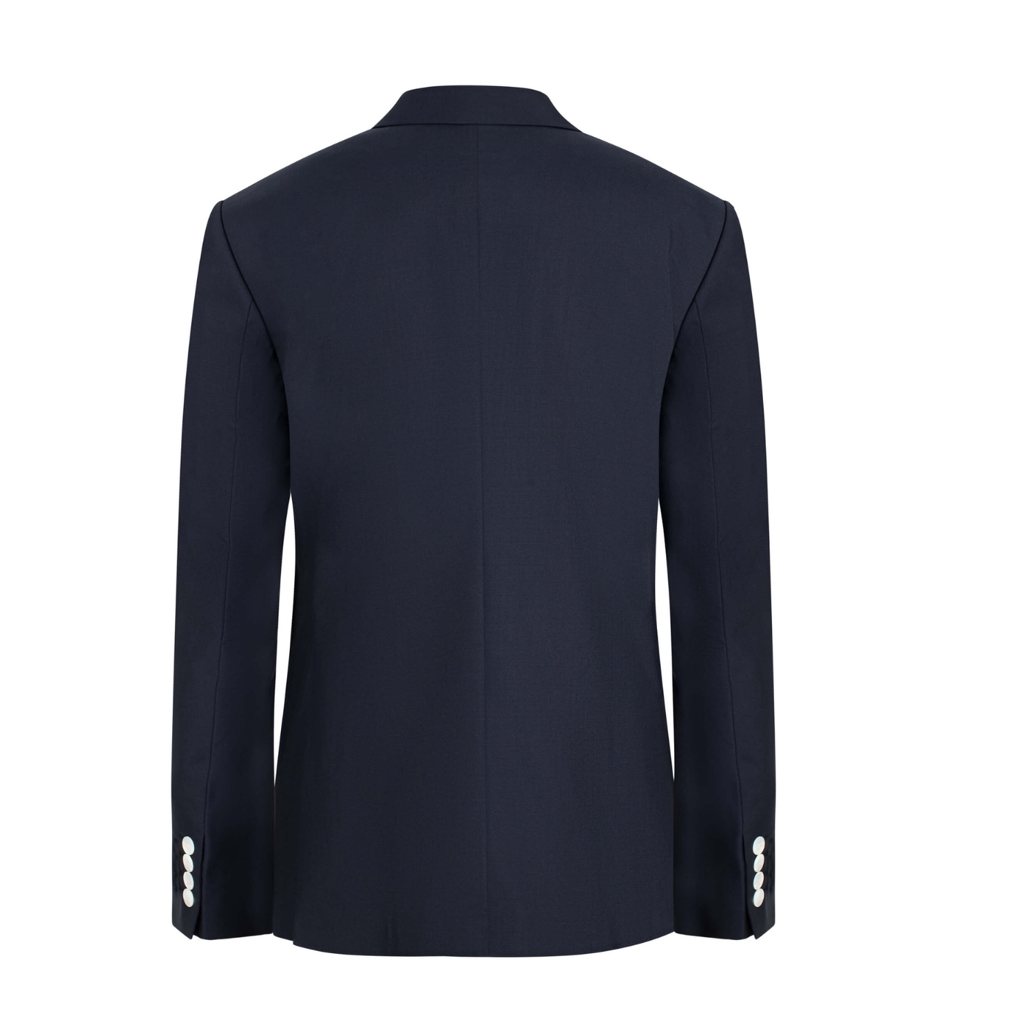 - Details: Notched lapels, hacking pockets + ticket pocket, two internal pockets, two-button front & rear twin vent flap.