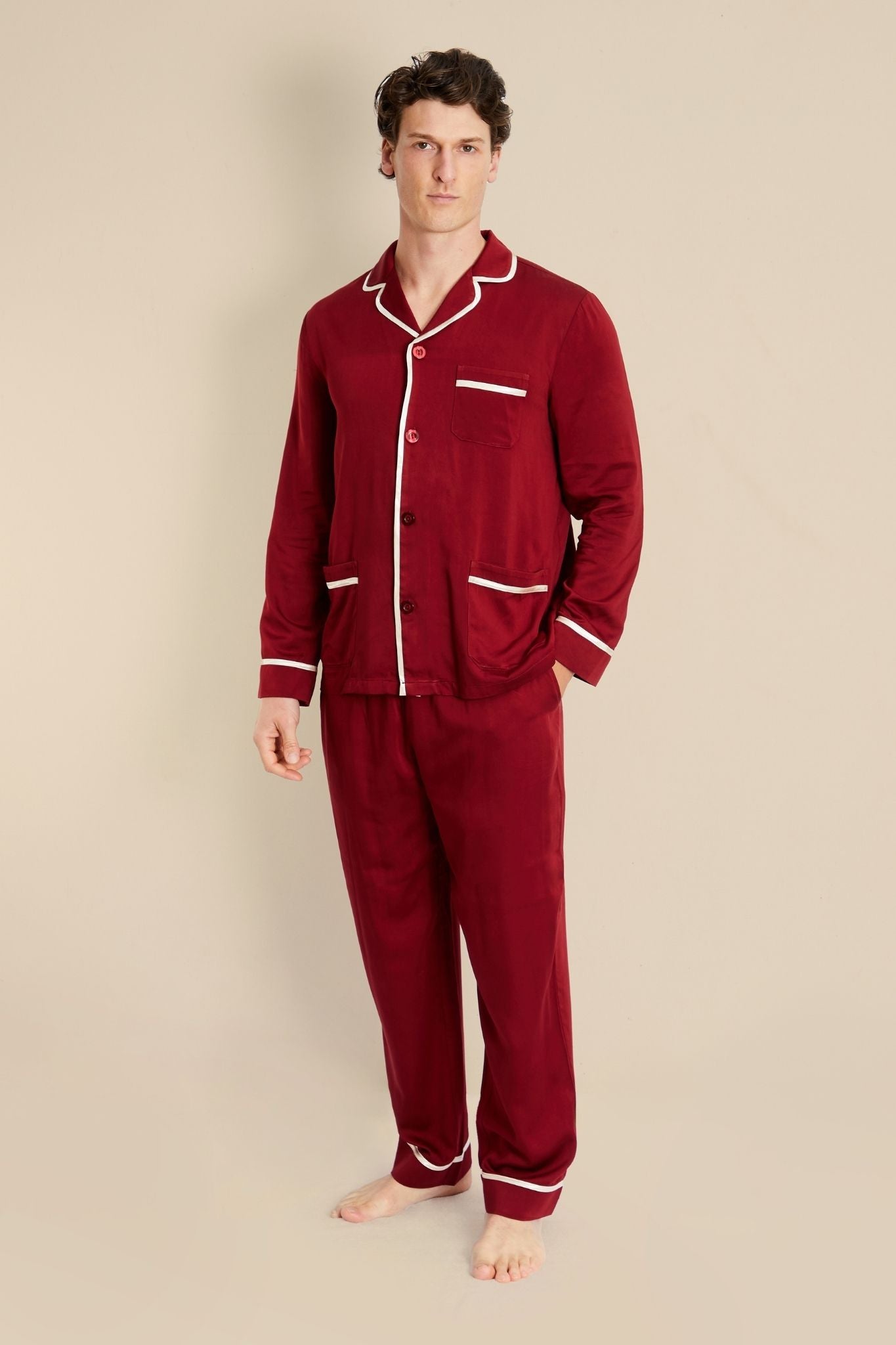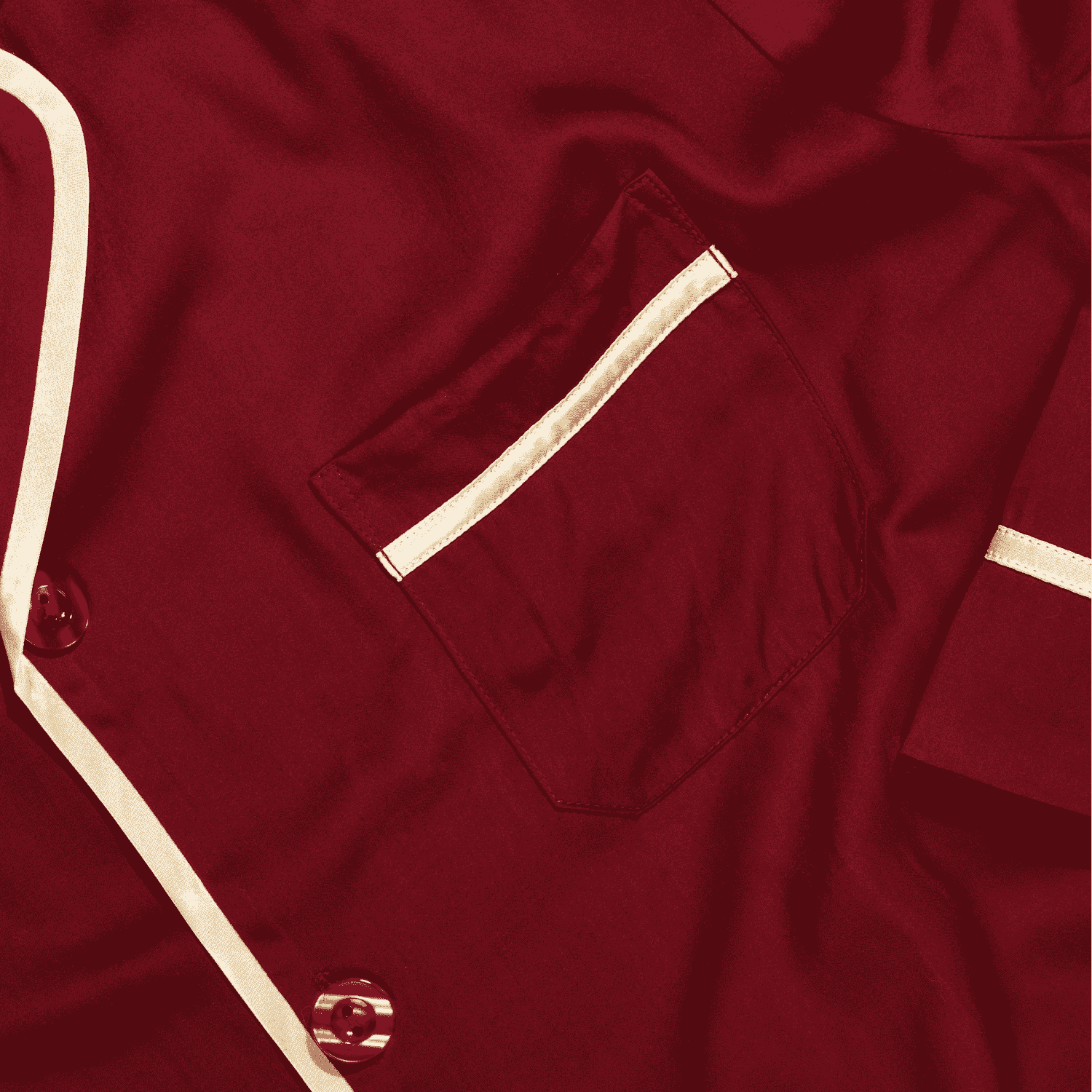 The Apollo Herren Satin Pyjama in rich burgundy, an elegant addition to our exclusive designer collection. Crafted from luxurious satin, this luxurious set offers a silky-smooth touch that feels gentle against your skin. The a deep burgundy hue and tailored fit provide both comfort and style.
