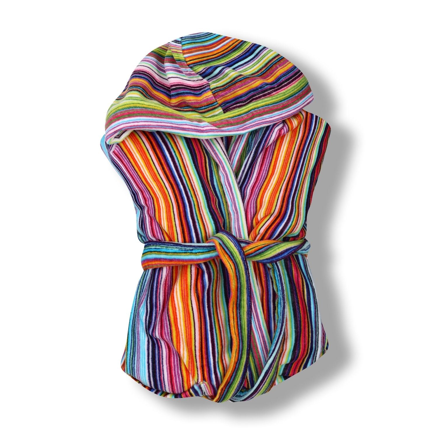 Luxus endet nicht, wenn Sie sich am Ende des Tages umziehen. Unser bunter Baumwoll-Bademantel Daylight für Frauen ist eine wundervolle Ansammlung von Streifen in einem traditionellen Wickelstil. Dieser Bademantel ist im locker sitzenden "Boyfriend Style", perfekt für stilechte Entspannung zu Hause.