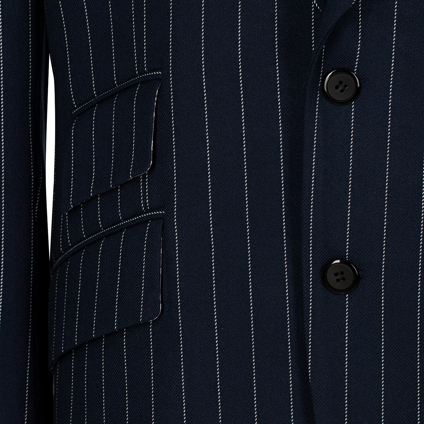 - Details: Notched lapels, hacking pockets + ticket pocket, two internal pockets, two-button front & twin vent flap at rear.